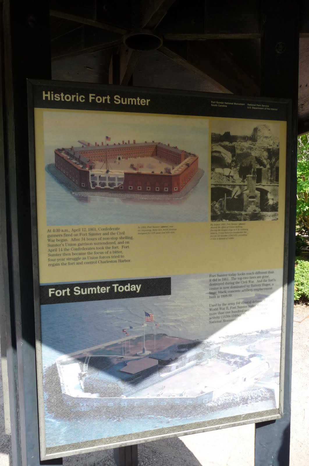 We took another trolley to the aquarium area and the Fort Sumter National Monument where we learned about how the first shots of the Civil War were fired at Fort Sumter. At the museum bookstore we bought the boys a book about the Civil War.